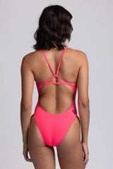 The Perry is a non-adjustable swim onesie that features contrasting stitching and binding for an athletic look. The contemporary design includes two over-the-shoulder straps that criss-cross along the back and transition into a cut-out detail along the ribcage